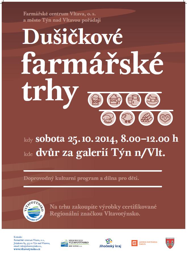 Srdečně Vás zveme na podzimní farmářské trhy, které se uskuteční v sobotu 25. 10. 2014 od 8 do 12 hodin na dvorku za galrií. Čeká na Vás doprovodný program a dílna pro děti. Podrobnosti jsou uvedeny v příloze.